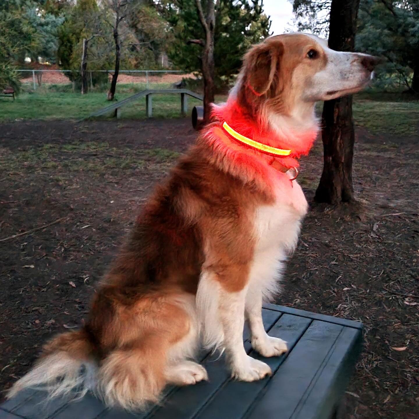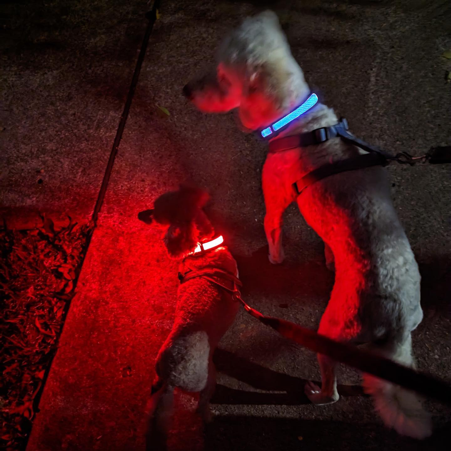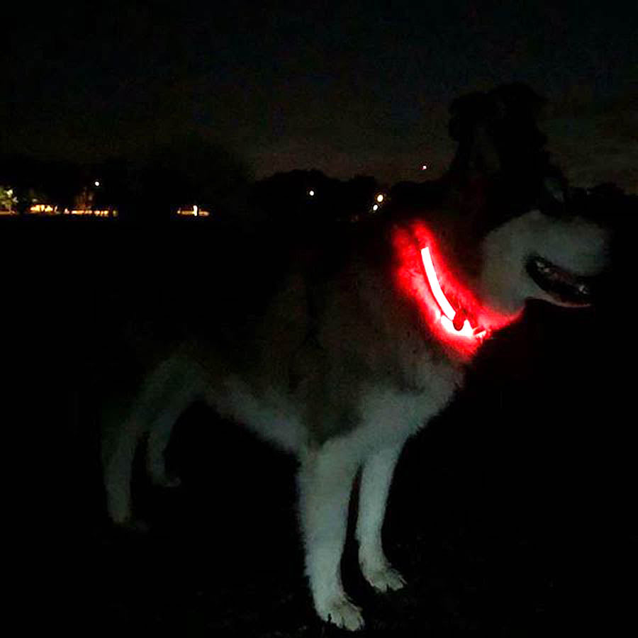 Yes! The collar features bright LED lights and reflective stitching, making your dog highly visible to cars, cyclists, and pedestrians during nighttime or early-morning walks.